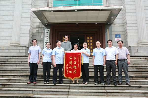 “感谢宜昌中院,感谢陈法官,让我最后得到公正的判决。”6月4日下午,当事人郑某终于见到了法官陈波,并将印有“公正执法公道人心”的锦旗送到其手中。
