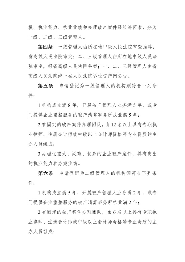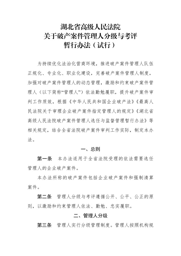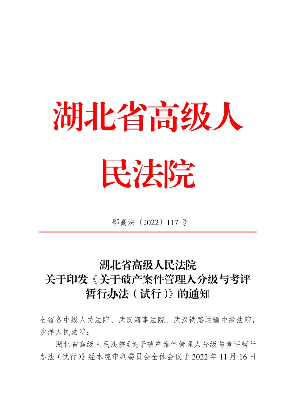湖北省高级人民法院关于印发《关于破产案件管理人分级与考评 暂行办法(试行)》的通知
