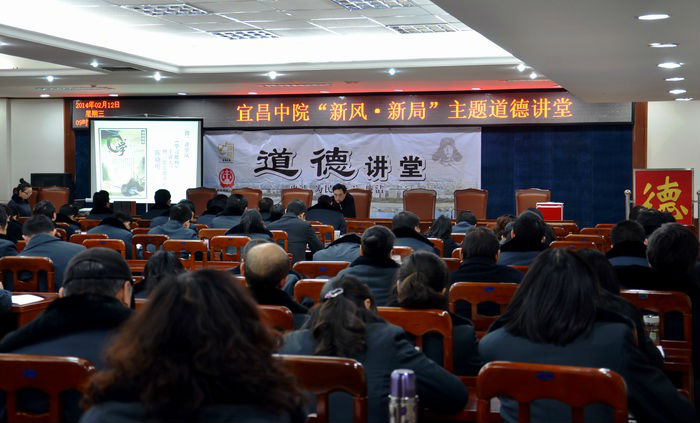 2月12日上午,结合春节后开展的党的群众路线暨“审判公开建设年”主题教育整训周活动,宜昌中院举办了“新风·新局”主题道德讲堂,分为“自我反省、唱歌曲、诵经典、讲学风、学模范、谈感悟、送吉祥、向‘德’字鞠躬、做善事”9项流程。