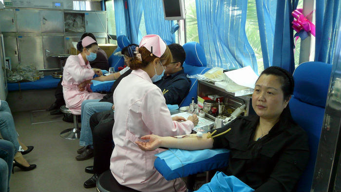 4月11日上午,宜昌市中级人民法院与市献血办在中院机关大楼前联合开展无偿献血活动。院领导率先垂范,干警踊跃参与,仅半天时间就有40多名干警职工参加无偿献血。在对报名献血者的血压、血液成分等进行检测后,市中心血站工作人员共对35名干警进行了现场采血,献血总量超过10000ml。