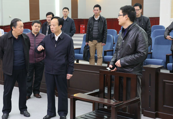 陈平安副院长一行先现场查看了宜昌中院101审判法庭,对该院科技法庭建设使用情况进行了详细了解,提出指导意见。随后陈平安副院长还观摩了@宜昌中院的微博室工作,并询问微博直播室的建设情况。