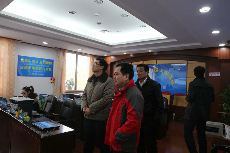 2月6日,武汉铁路运输中级法院院长夏明权一行来到宜昌中院,参观我院基础建设情况,交流工作。