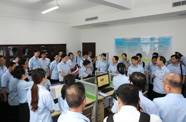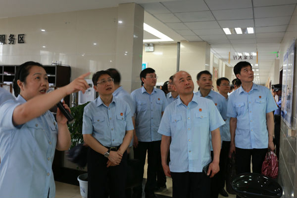 6月16日上午,全省法院诉讼服务中心建设现场推进会与会人员来到宜昌中院,参观诉讼服务中心。