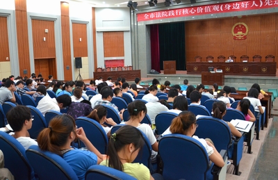 6月20日上午,三峡大学法学院203名大一本科班学生在四名老师的带领下,到宜昌中院进行司法认知见习。200余名师生首先观摩了由中院民一庭副庭长张晓燕法官担任审判长的一件民事案件的庭审过程,然后听取了张晓燕法官关于法院的性质、职责、组织结构以及诉讼常识、审判制度、办案流程等方面的基本知识讲解。现场秩序井然,气氛融洽,效果良好。