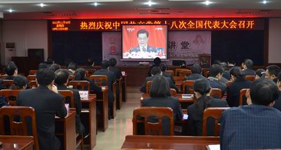 11月8日,举世瞩目的中国共产党第十八次全国代表大会在北京人民大会堂隆重召开,胡锦涛总书记在大会开幕式上作主题报告。上午9时,宜昌中党组中心组成员和党员干警100多人在二楼会议室,集中收看十八大开幕式盛况。参会干警情绪高涨,会场内气氛热烈,大家对十八大胜利召开感到喜悦和激动。