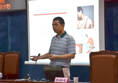 李新志副教授首先从法官干警脑力劳动多,休息时间少,工作紧张等容易引起颈椎腰椎疾病的职业特点谈起,分析了颈椎腰椎疾病的成因和主要症状,从专业角度为干警提供了预防和治疗的具体措施,消除了部分治疗误区,鼓励干警从培养良好的生活习惯做起,适量运动,保持良好心态,以健康的体魄投入工作和生活。
