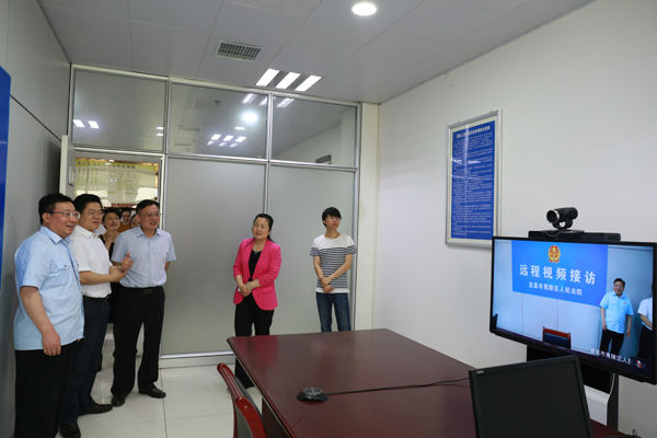 在宜昌中院调研结束后,李群星副院长一行马不停蹄赶赴夷陵区法院继续查看基层法院的建设情况。在参观了夷陵区法院的诉讼服务大厅、远程视频接访平台、科技法庭等设施设备后,李群星副院长表示宜昌基层法院的建设也日趋完善,司法服务工作开展很有起色。